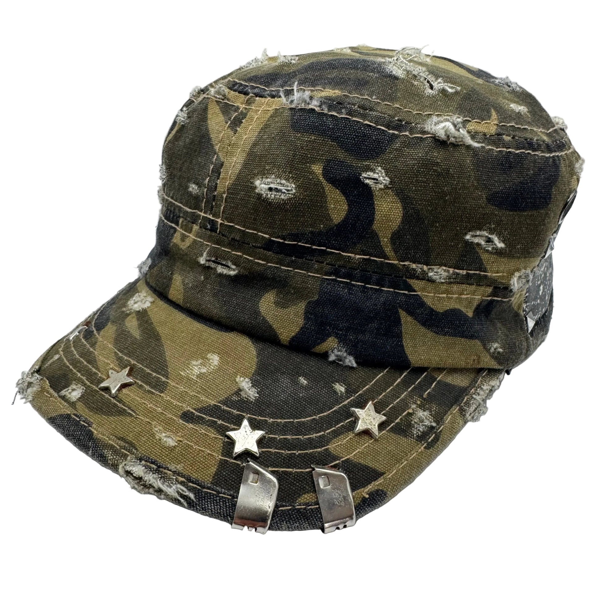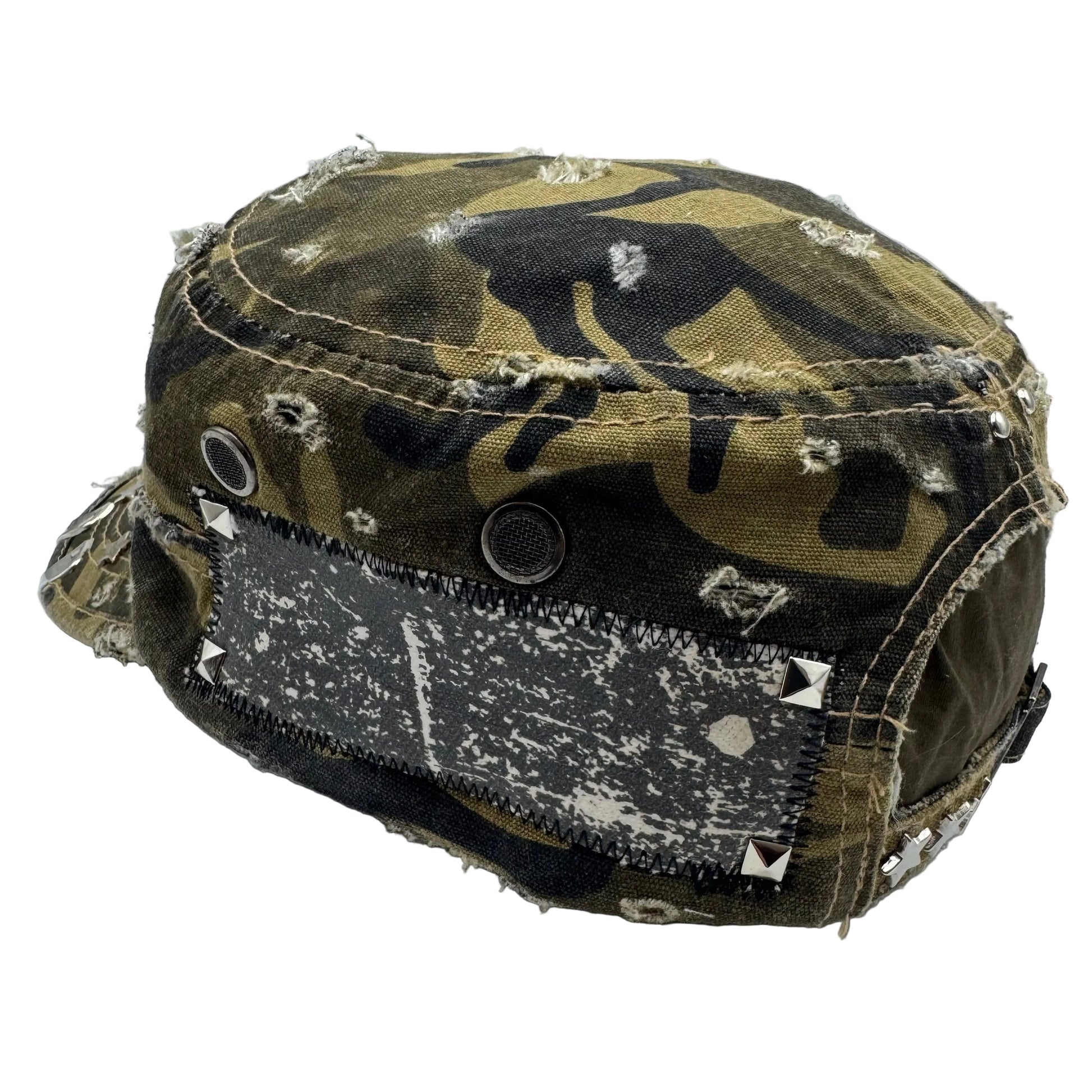 studded patch, star rivets, dome rivets, pins, safety pins, distress